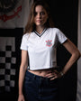The classic black and white design in a cropped version. The Corinthians White Cropped Top features a V-neck with black and white piping, dark side stripes that slim the silhouette, a crest applied to the chest, and the CORINTHIANS signature on the back. Lightweight, modern, and perfect for everyday wear or a match day.