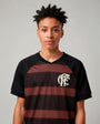 With a deep, elegant, and symbolic design, the jersey features stripes in shades of dark brown and black, combined with a graphic pattern inspired by Afro-Brazilian culture. The classic CRF crest in high relief has a textured off-white tone that modernizes the piece without losing its retro spirit.