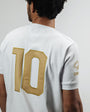 Commemorative shirt celebrating the thousandth goal; a portion of the proceeds will be donated to the "Pelé Foundation". Honor one of the greatest idols of Santos and the world of football with the Santos Pelé Retro Shirt , which offers tradition and comfort, ideal for fans to pay homage to the eternal Edson Arantes do Nascimento (Pelé). Developed in heavy cotton just like the original, the embroidered retro crest maintains the originality of the piece. On the back, it features the number 10, with laser-cut twill and embroidery around it. Casual wear, suitable for leisure time and going to the stadium. 100% cotton material.