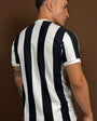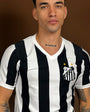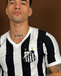 The Santos Retro 1984 Men's Striped Shirt is the perfect choice for passionate Santos Futebol Clube fans and fans of classic Brazilian football. Inspired by the uniform worn by the team in 1984, this shirt brings back the striking style with vertical black and white stripes that made history on the pitch. Made from 100% high-quality cotton, the shirt offers comfort, durability, and an excellent fit. The retro Santos crest embroidered on the chest further enhances the vintage look, while the ribbed V-neck collar maintains the authenticity of the original model. Ideal for casual wear, sporting events, or as a collector's item, this retro Santos 1984 shirt is indispensable for those who value the tradition and identity of the club.